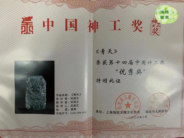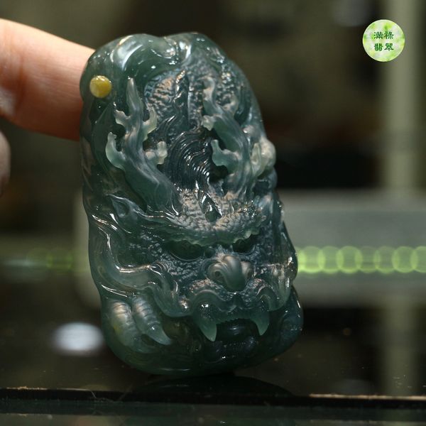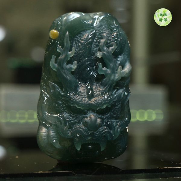 翡翠A貨玉器龍牌-青天作品獲十四屆中國神工獎優秀獎 龍頭 雕琢感十足 神龍神情威武 兇猛霸氣