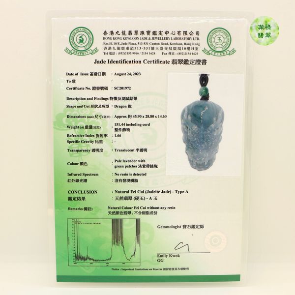 附送:香港翡翠鑑定證書SC201972(天然翡翠A貨)