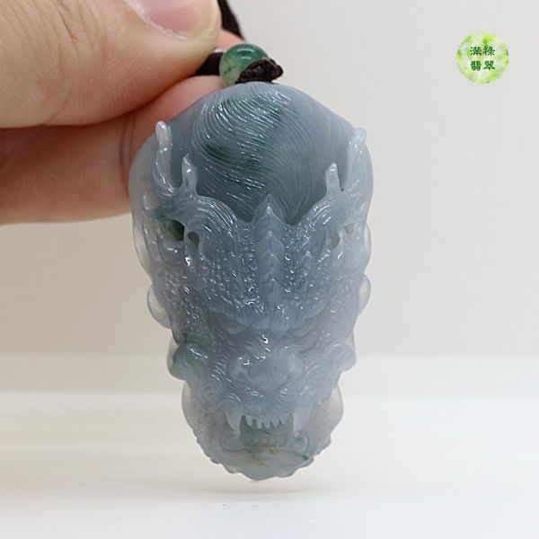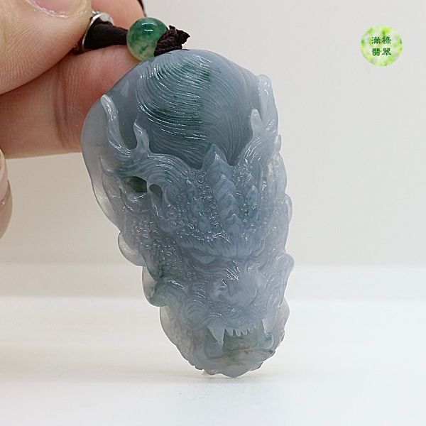翡翠A貨玉器玉紫羅蘭龍牌翡翠吊墜 龍首往往代表那些能力很強的人才 成爲群龍之首 附送香港翡翠鑑定證書SC201972
