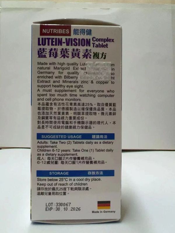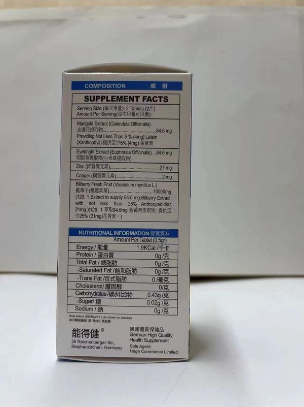 本品蘊含有活性花青素高達25%。取自質莓提取物。於德國製造以確保優良品質·本品也添加天然葉黄素、明眼草提取物,微元素鋅及銅質等有益視力重要成份。對長時間使用電腦和手機顯示器的现代人,本品是不可或缺的健康视力保健品。