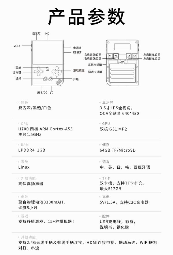 開源掌機ANBERNIC RG35XX Plus便攜式遊戲機懷舊復古街機遊戲(灰色標配64GB 5000+遊戲)