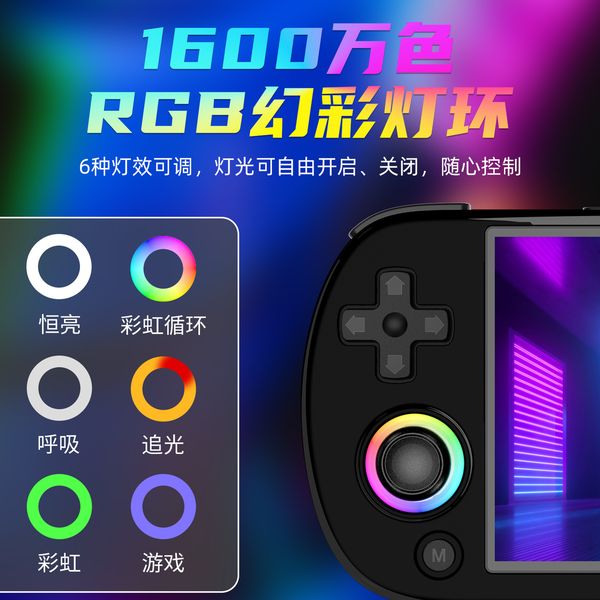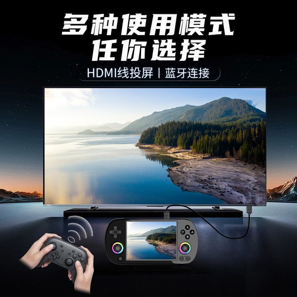 2024新ANBERNIC RG40XX H掌上型遊戲機大螢幕輕薄雙搖桿氣氛燈開源掌機(黑色標配64GB+256GB卡 11000多款遊戲)