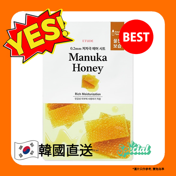 ETUDE HOUSE-【1片】超薄植物纖維保濕面膜1片(麥蘆卡蜂蜜)(8809668016321)[平行進口]