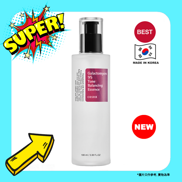 COSRX Galactomyces 95 Tone Balancing Essence 是一種亮白精華,含有半乳糖酵母菌發酵濾液,可保持疲倦的皮膚清潔光滑。