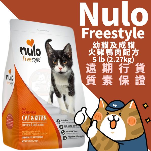 nulo-Freestyle 無穀物高肉乾糧幼及成貓配方 (火雞、鴨) 5磅
