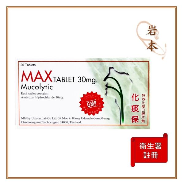 化痰保 特效化痰口服片劑 - Ambroxol 30mg #化解濃痰 #舒緩咳嗽 #旅行平安藥 【香港正版正貨】EXP: 31/08/2025