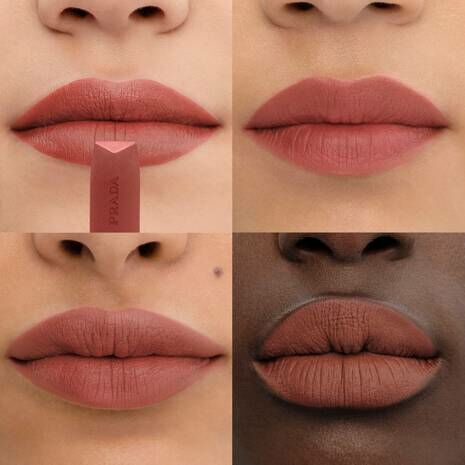 Prada Monochrome Soft Matte 唇膏色調溫柔亮澤,呼應 Prada 經典 Re-Nylon 面料的光澤質感及靈活特色。持續使用唇膏可見明顯修護效果,高度顯色,質感柔滑,能自然融入雙唇。三角形管裝唇膏設計能輕鬆描繪唇形,質感細緻,重覆疊塗可使顏色更出眾。