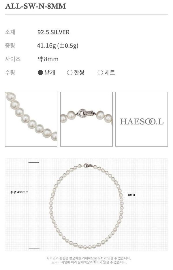 HAESOO.L 珍珠頸鏈 (8mm) (韓書珍,郭美香同款)-8mm