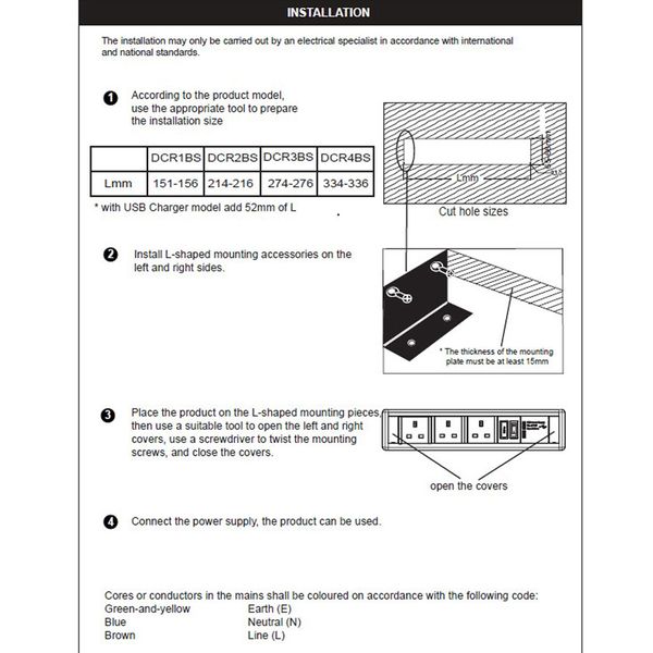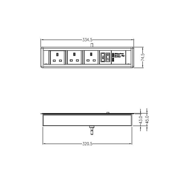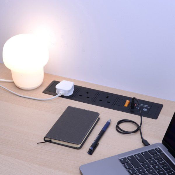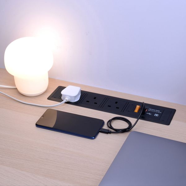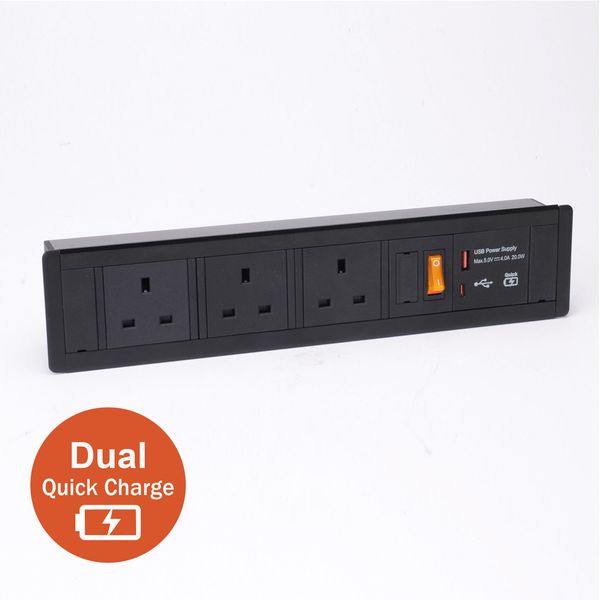 嵌入式平板排插 -3 英式(港式)插座+2 USB快速充電接口 USB-A+C-黑色