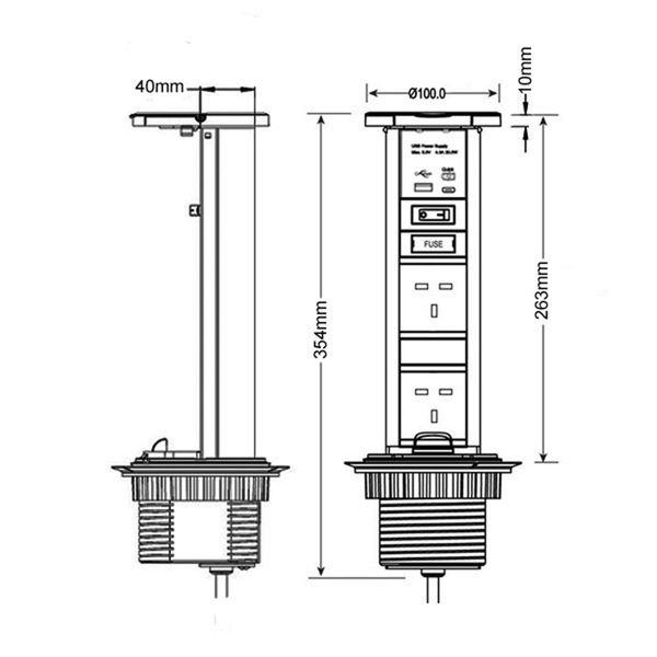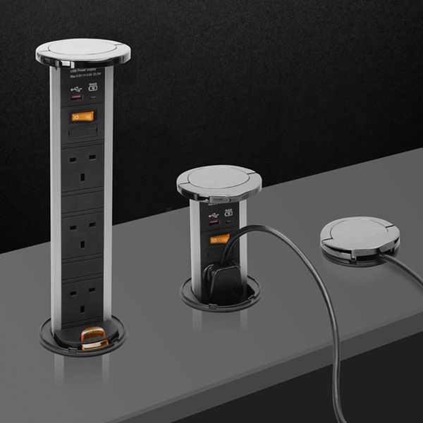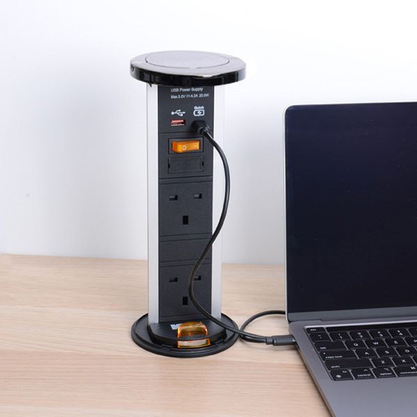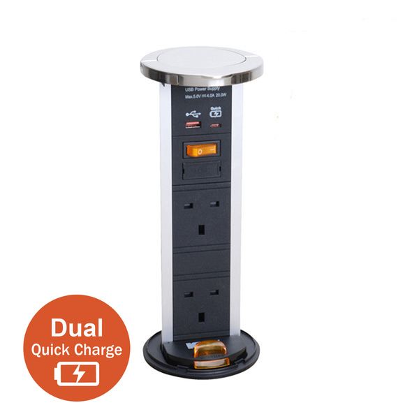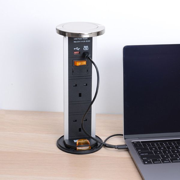 IP54 防水升降式排插 - 2位英式(港式)插座 + 2位USB快速充電器 (Max.20W)-不锈鋼色