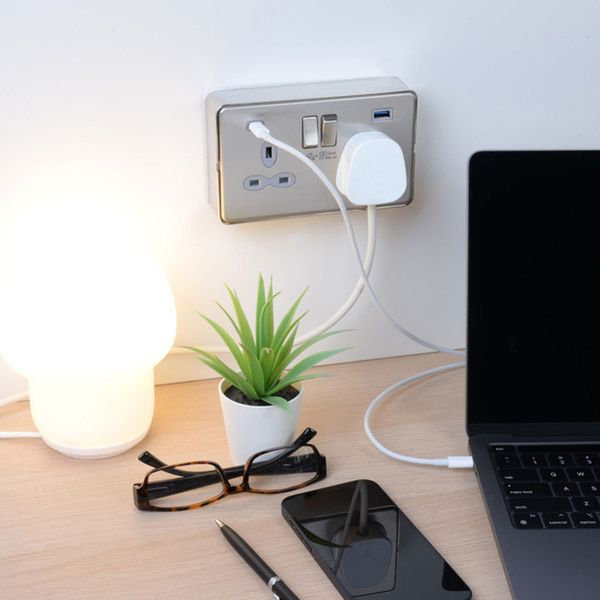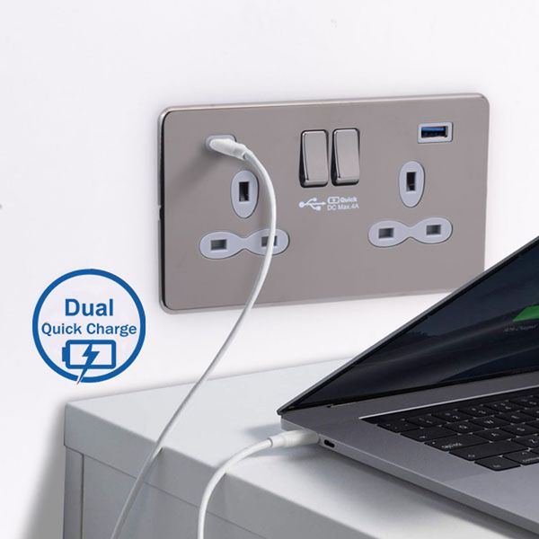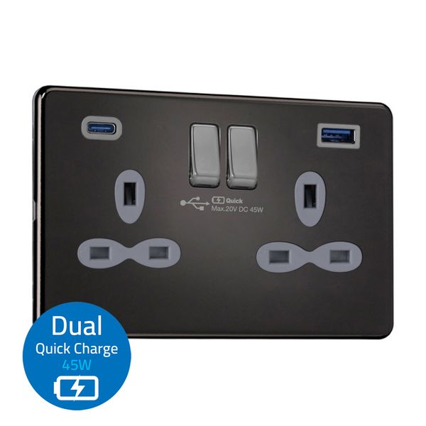 13A 孖位開關插座帶45W雙USB快速充電器USB-A/C -黑鎳色