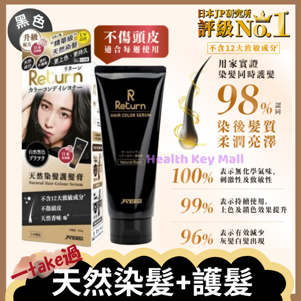 Return回本 天然染髮護髮膏 (黑色) #髮色持久 #天然染髮 #絲悅 #Cielo #利尻昆布 #50惠 【可按頂部 "粉紅色logo" 查看人氣熱賣及精選產品】