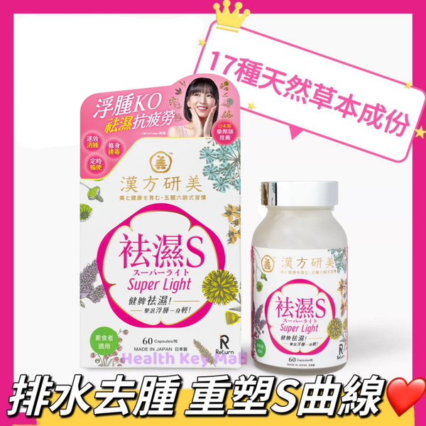 日本RETURN®漢方研美 — 祛濕S ‘Super Light’ 配方全方位袪濕排毒,速攻解決虛肥、身體浮腫、 眼簾浮腫、疲倦、渴睡、四肢重墜及新陳代謝慢 !