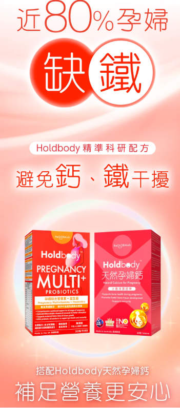 Holdbody 孕婦綜合營養素+益生菌 , 專為準備懷孕、懷孕及授乳期婦女而設,滿足每日所需營養。全面支持媽媽健康與胎兒發展。