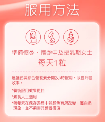 •建議婦女從計劃懷孕、整個懷孕期間,以至授乳期內服用。