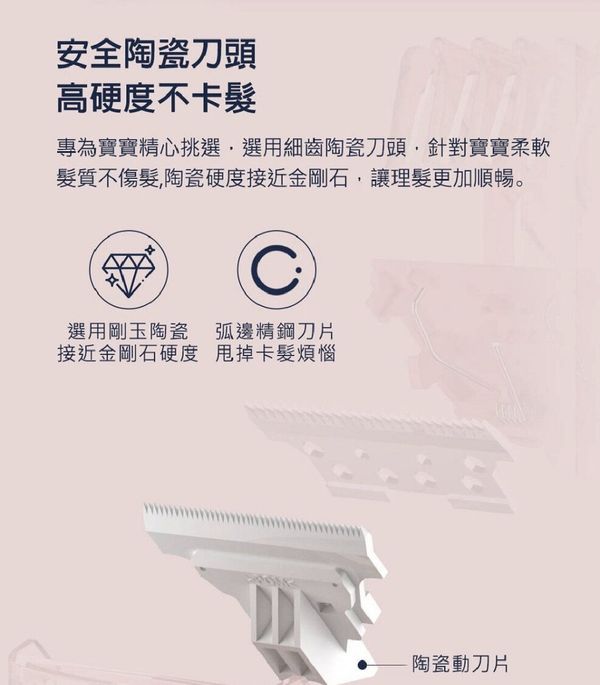 細齒陶瓷刀頭,不傷兒童髮質理髮更順暢