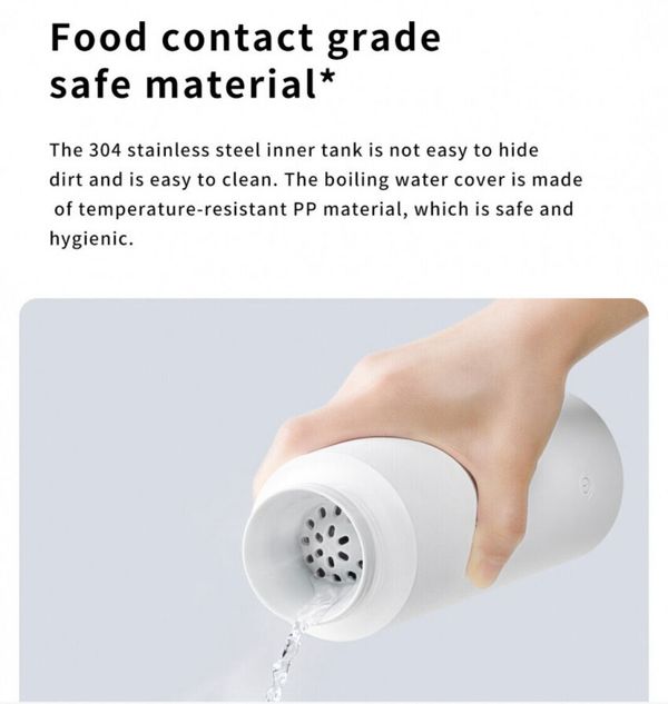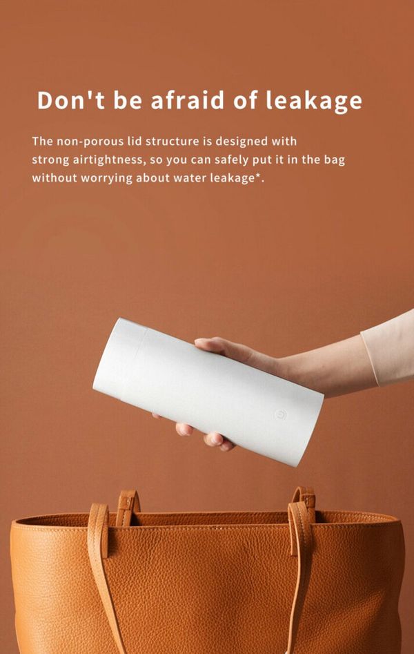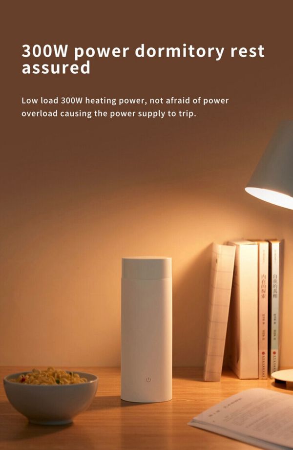 米家便攜電熱杯容量為350ml,採用無孔蓋設計,密閉性高,放入袋中不用擔心漏水,而且小巧不佔空間。 產品側面有電源線插位和開關按鈕,一键煲水,隨時可停。蜂巢式水蓋用於保護用家,避免氣壓過高帶來的安全 隱患,有效防止開蓋時濺水。 電熱杯內部採用雙層304不銹鋼,還帶有保溫層,在常溫環境下可保溫6小時。