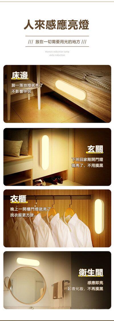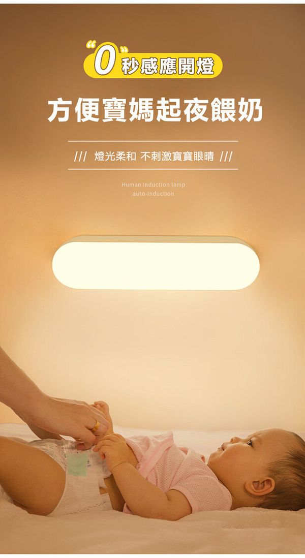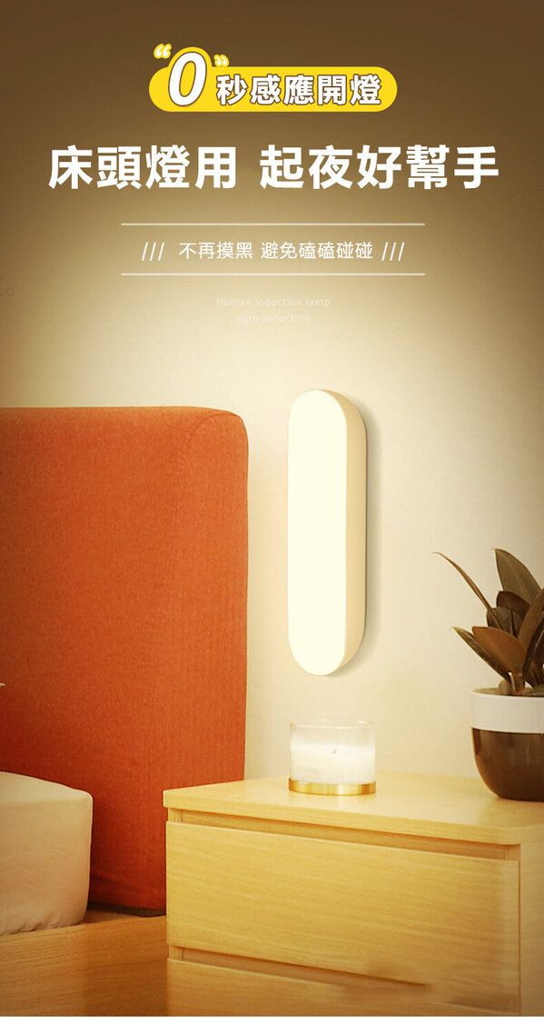 --智能人體感應小夜燈LED-白光 (新款帶開關) USB充電 壁燈 嬰兒床頭夜燈 衣櫃燈 夜讀燈