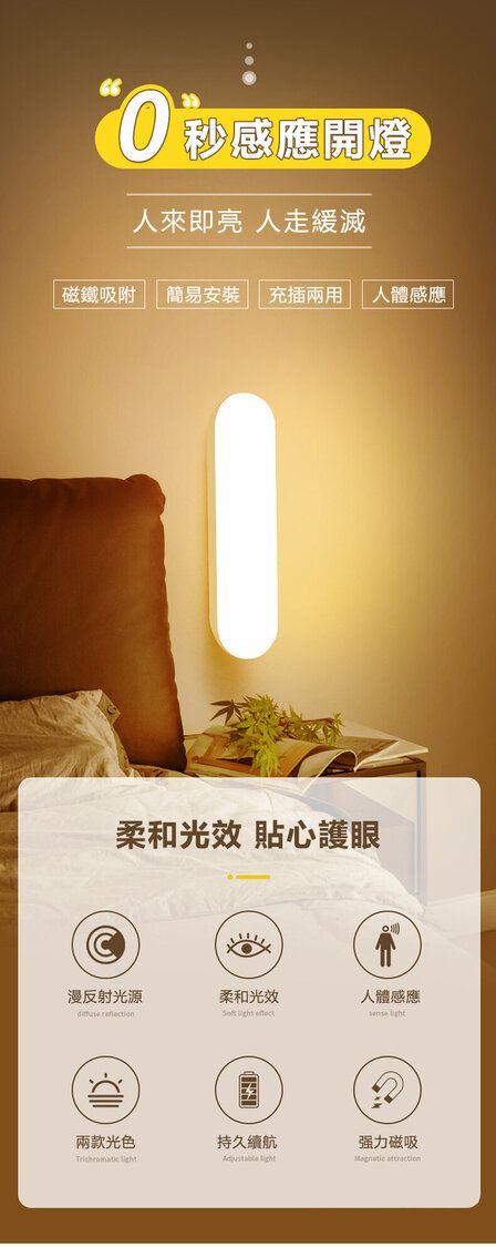 0秒感應開燈 人來即亮 人走緩滅