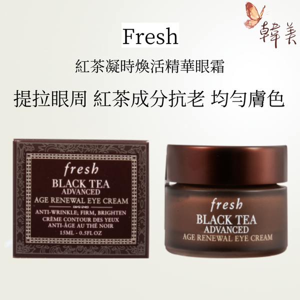 fresh馥蕾诗红茶/黑茶抗皱紧致浓缩眼霜15ml,一款卓越有效的眼霜,能明显减少和防止老化的迹象,并高效保湿和紧致眼部区域,有效阻止自由基并增加皮肤弹性,集眼部精华和眼霜为一体,继承黑茶面霜的面膜质地,不油腻,使用起来容易吸收,分子量特别小,细腻柔滑,延展性十足,淡淡的清凉感会减轻水肿的眼部皮肤。