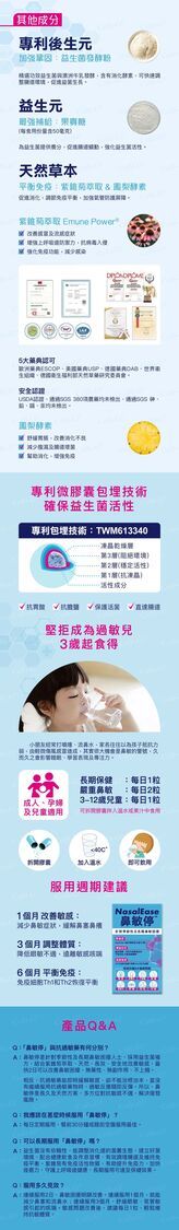 經人體臨床證實:能快速緩解鼻敏症狀,改善氣管敏感及濕敏肌膚,並調節過敏體質產品安全,成人、孕婦及小朋友3歲以上就可以服