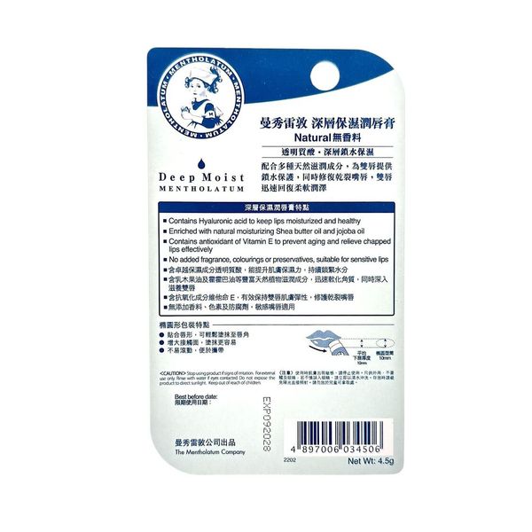 曼秀雷敦-深層保濕潤唇膏-無香料 4.5g[4897006034506] (平行進口)