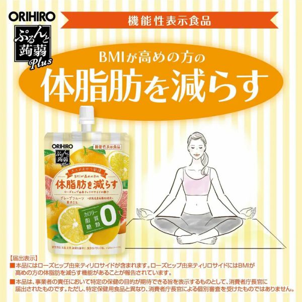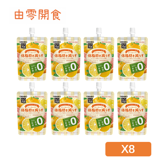 ORIHIRO - 0 Kcal 吸吸蒟蒻啫喱 (西柚)零卡路里 8袋 (平行進口)(新舊包裝隨機發貨)