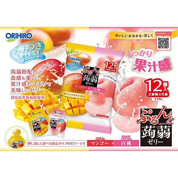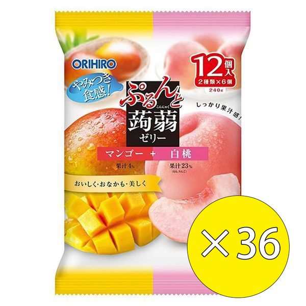 ORIHIRO - 36袋 日本蒟蒻啫喱果凍 芒果+水蜜桃【平行進口】