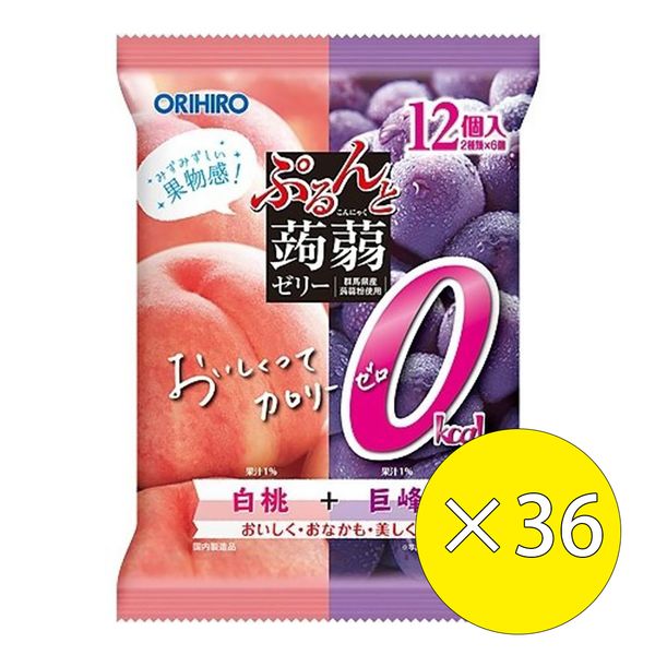 ORIHIRO - 36袋 日本蒟蒻啫喱果凍 葡萄+水蜜桃【平行進口】