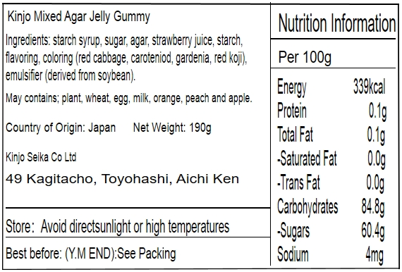 金城製菓 - 雜錦水果味啫喱糖 寒天軟糖 175g*2包装 (平行進口)