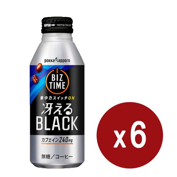 札幌 - [日本咖啡] Biz Time無糖濃香黑咖啡(鋁罐樽裝) – 6樽 x 390克-日本札幌 Pokka Sapporo (新舊包裝隨機發送)