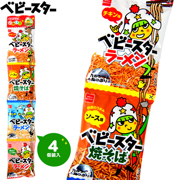 優雅食 - 日本童星點心麵 四種味道 干脆面炒面即吃麵 兒童零食 4連包(平行進口)