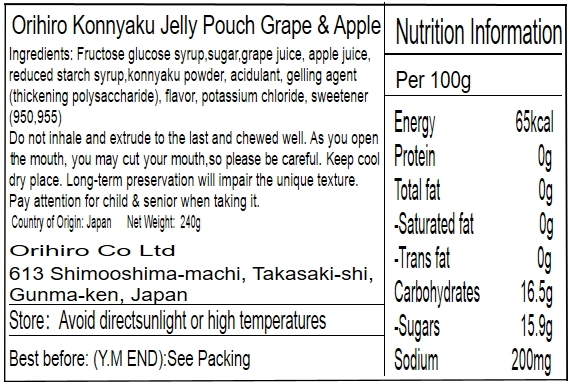 ORIHIRO - 日本蒟蒻啫喱果凍 2包 (巨峰提子+ 蘋果)(平行進口) 零食