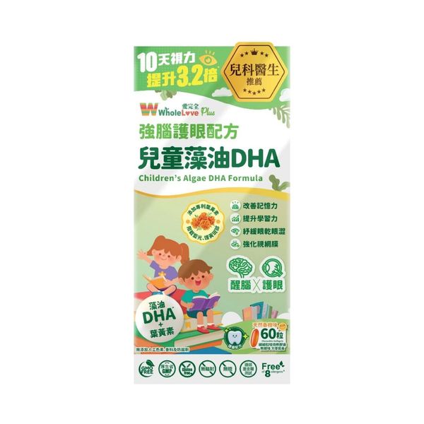 「愛完全兒童藻油DHA」特選來自北歐優質水域的天然海藻。配方根據國際組織指引,每食用分量含220毫克藻油DHA精華,更加入專利游離型葉黃素,令兒童頭腦更靈活,視力更健康,學習能力更強,成績突飛猛進!