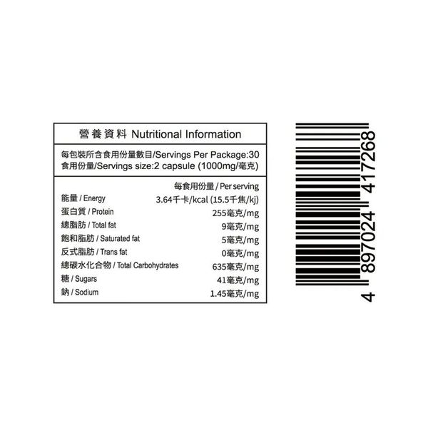 建議服用量 : 空腹服用最佳,每日1次,每次1-2粒