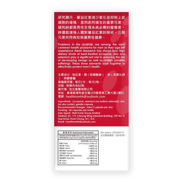 主要成份:茄紅素、硒、鋅