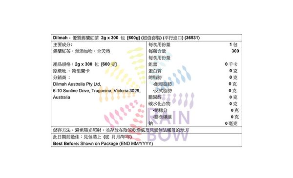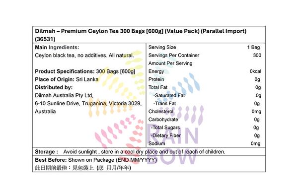 分銷商 : Dilmah Australia Pty Ltd, 6-10 Sunline Drive, Truganina, Victoria 3029, Australia