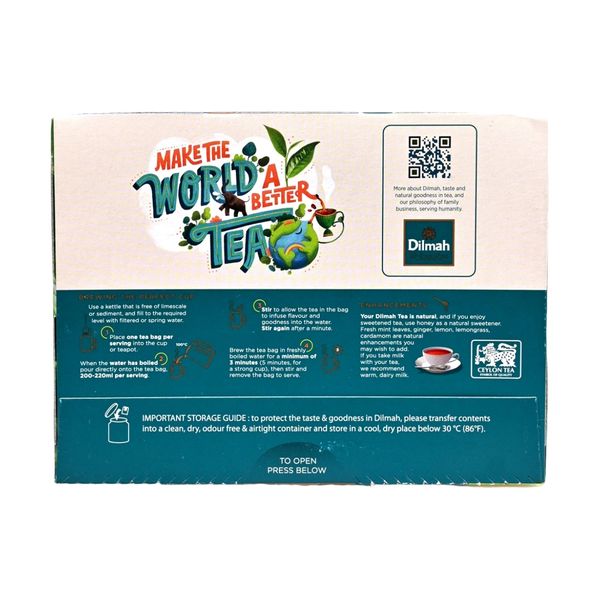 優質錫蘭紅茶,精緻平衡的豐富度、風味、濃度和香氣,成就一杯完美的茶。我們的優質茶來自單一產地;斯里蘭卡中部高地,以其明亮和中等強度而聞名。純錫蘭碎橙白毫茶 (BOPF) 沖泡的茶口感宜人,茶水顏色呈半透明的紅棕色讓人聯想如同雪利酒的顏色一般、茶水並將發出如蜂蜜般的香氣,略帶麥色與瓜果香,此茶口味實為紅茶中的最高極至,非常適合日常飲用。Dilmah優質錫蘭紅茶系列讓茶愛好者欣賞真正的錫蘭茶的浪漫氣息。