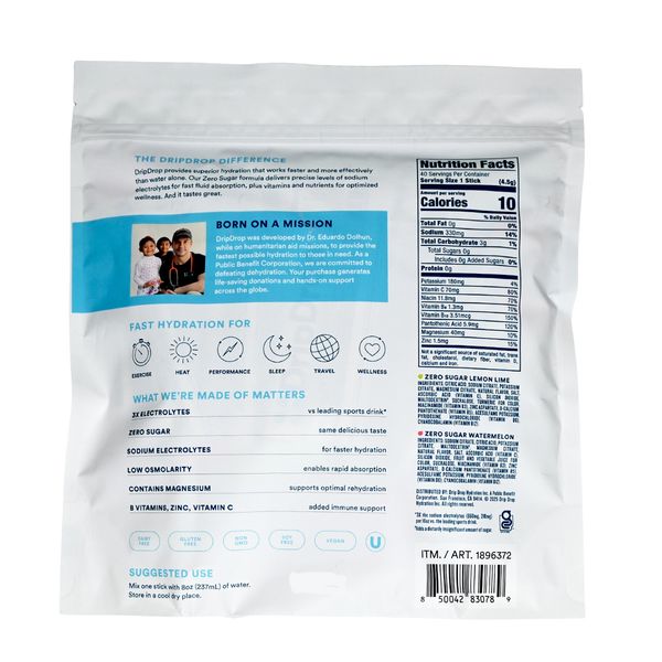 DripDrop 由一位醫生創立,是一項突破性的創新,榮獲梅奧診所人道獎。作為公益企業,您的每一次購買都將支持我們透過向全球捐贈產品來對抗脫水的使命。