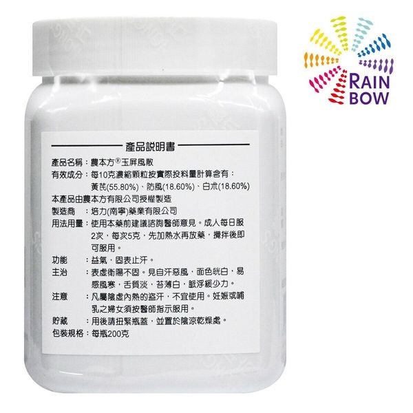 黃芪 四錢八分,白朮 一錢六分,防風 一錢六分