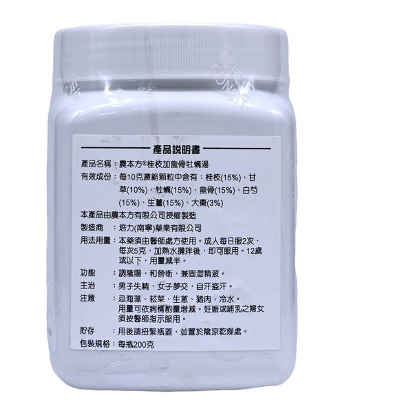 桂枝二錢四分 甘草一錢六分 牡蠣二錢四分 龍骨二錢四分 白芍二錢四分 生薑二錢四分 大棗五分