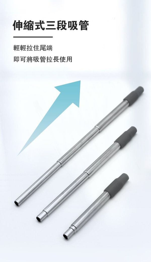 伸縮式三段吸管,輕輕拉住尾端即可將吸管拉長使用,使用後僅需輕推尾端即可收納;矽膠吸嘴增加飲用舒適度,不刮嘴不刮舌;附贈專屬收納盒及清潔刷,輕巧易攜帶,可隨身攜帶,更安全更環保。