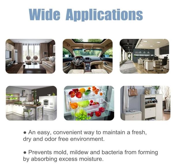 適用範圍:衣櫃,鞋櫃,車廂,洗衣房,健身包,寵物窩等需要淨味除濕,通風不佳的環境。或替代吸走新居/新裝修的甲醛