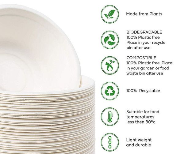 SavingOasis 環保餐具,表面光潔;由食品級甘蔗漿材質製成,堅固,光滑,無毛刺,硬度好。可降解餐具,在自然環境作用下最後回歸自然,不對環境生產污染。