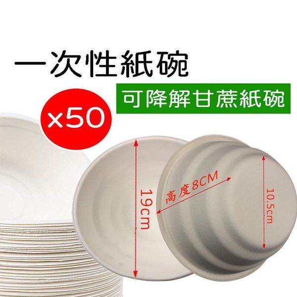 MasterTool-【可降解及可微波爐用】SavingOasis 一次性即棄紙碗 700ml (50隻裝) 環保可生物降解甘蔗紙碗 19cm 外賣餐具 一次性餐具 紙盒包裝 衛生環保