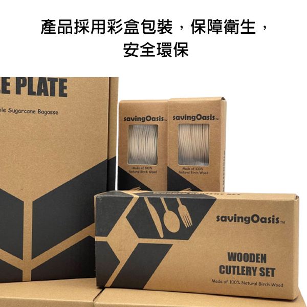 SavingOasis 環保餐具,表面光潔;由100%天然樺木製成,堅固,光滑,無毛刺,硬度好。可降解餐具,在自然環境作用下最後回歸自然,不對環境生產污染。