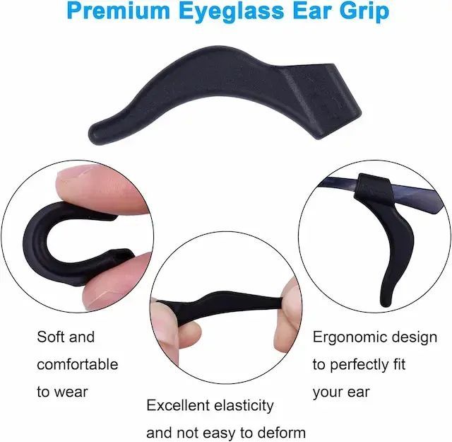 【舒適的矽膠材質】眼鏡固定器和耳夾掛鉤均由優質矽膠製成,柔韌、輕便、防滑,不會變黃或變硬。