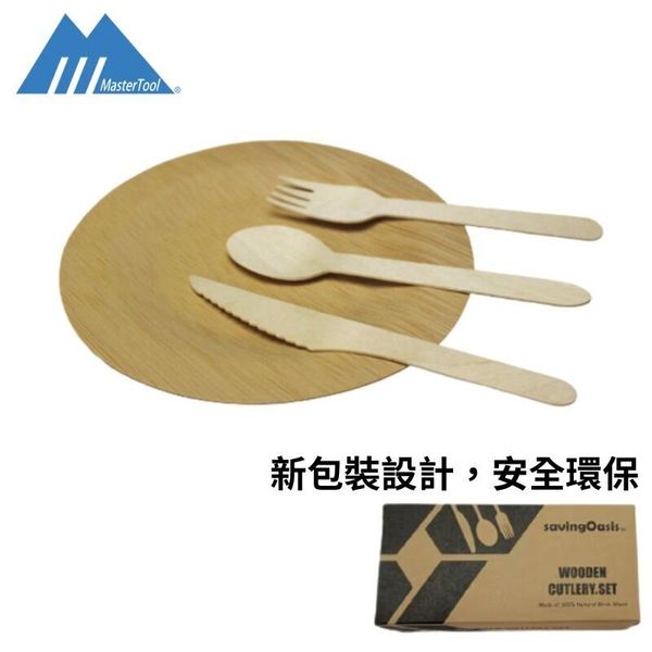 MasterTool-SavingOasis 100入環保即棄餐具套裝 (7"紙碟x25,木刀x25,木叉x25,木匙x25)