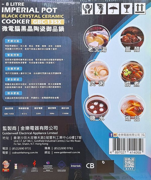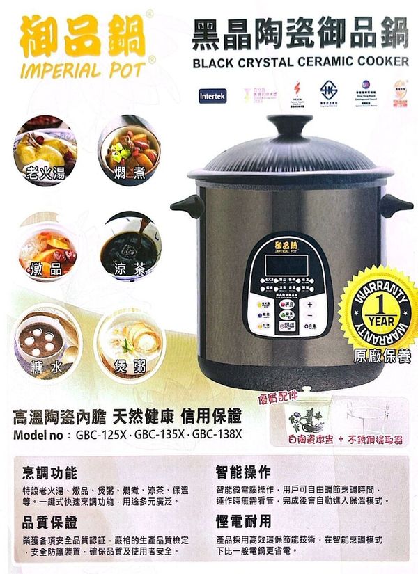 2. 多種烹調功能包括老火湯、煲粥、煲涼茶、燉品及燜煮。