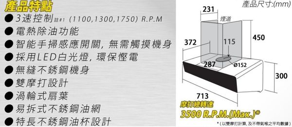 德國卓爾-SCH9800T 【連安裝】【電熱除油】713CM 抽油煙機 智能手掃開關